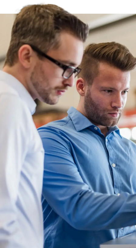 • 두 명의 연구원이 미세먼지 저감 시스템을 관찰하는 모습 두 명의 연구원이 미세먼지 저감 시스템을 관찰하는 모습
